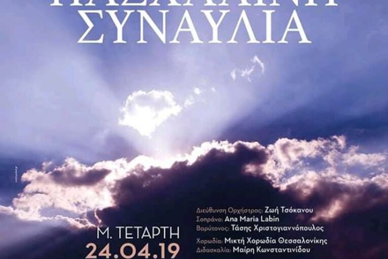 Η Κρατική Ορχήστρα Θεσσαλονίκης, στην καθιερωμένη Πασχαλινή συναυλία της, παρουσιάζει έργα Σόλωνα Μιχαηλίδη, Φρανσίς Πουλένκ και Γκαμπριέλ Φωρέ, υπό τη μουσική διεύθυνση της Ζωής Τσόκανου. Συμπράττουν η σοπράνο Ana Maria Labin, ο βαρύτονος Τάσης Χριστογιαννόπουλος και η Μικτή Χορωδία Θεσσαλονίκης σε διδασκαλία Μαίρης Κωνσταντινίδου.