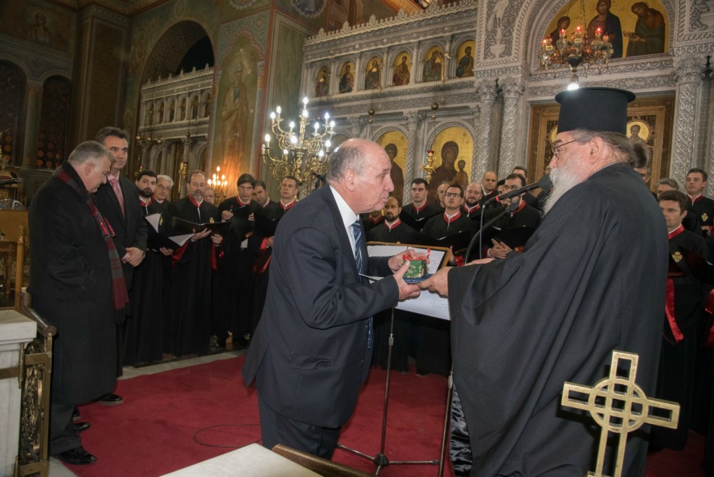 Στο τέλος της εκδήλωσης, ο προϊστάμενος του ναού π. Νικόλαος Κατσαφαρόπουλος απένειμε τιμητική διάκριση στην χορωδία «Θεόδωρος Φωκαεύς» για την εξαιρετική της παρουσία και την προσκάλεσε να ψάλλει σε όποια πανήγυρη του ναού επιθυμεί, ενώ παρέδωσε αναμνηστικό δίπλωμα και στην πολυφωνική χορωδία «Άγιος Αλέξανδρος» για την συμμετοχή της. Στο βήμα ανέβηκε κατόπιν ο μέντορας του κ. Ηλία Τούμπα, ο Άρχων Μουσικοδιδάσκαλος του Οικουμενικού Θρόνου Διαμαντής Μαυραγάνης, που μίλησε για τον μαθητή του και την όμορφη αποψινή εκδήλωση και αναφέρθηκε με πολύ κολακευτικά λόγια στην «άριστη απόδοση των κλασσικών μαθημάτων από τον Βυζαντινό χορό «Θεόδωρος Φωκαεύς», τις τέλειες τονικές εναλλαγές και την αξιοζήλευτη συνοχή του». Μετά, έψαλλε υπέροχα τον ύμνο «Εις Θεός μέγας», παρά το μεγάλο της ηλικίας του και ευχήθηκε χρόνια πολλά σε όλους. Την όμορφη εκδήλωση έκλεισε η Βυζαντινή – Παραδοσιακή χορωδία των Πατρών «Θεόδωρος Φωκαεύς», αποδίδοντας εξαίσια την φήμη του Μακαριωτάτου Αρχιεπισκόπου Αθηνών και πάσης Ελλάδος κ.κ. Ιερωνύμου και του Σεβασμιωτάτου Μητροπολίτου Πατρών κ.κ. Χρυσοστόμου.