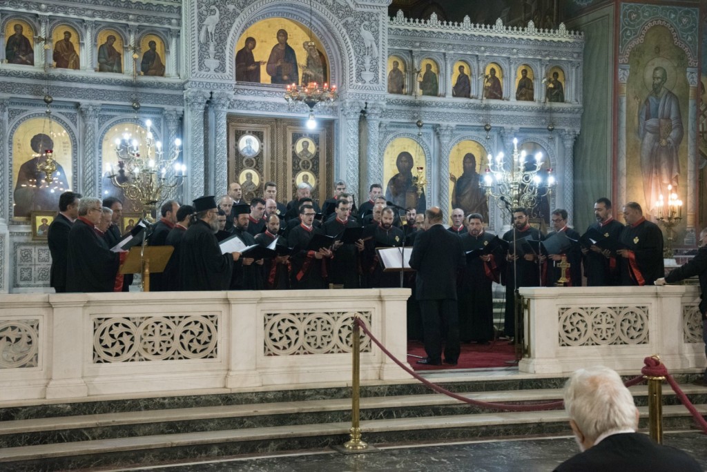 Στην εκδήλωση στον κατάμεστο ναό, παρέστησαν εκτός των άλλων, πλειάδα Ιερέων και Αρχιμανδριτών πολλοί μουσικολογιώτατοι ιεροψάλτες, ο βουλευτής Επικρατείας κ. Θ. Φορτσάκης, ο οποίος απηύθυνε και χαιρετισμό, ο εκπρόσωπος του Δημάρχου Αθηναίων και πρόεδρος του ΟΠΑΝΔΑ κ. Χ. Τεντόμας, ο στρατηγός ε.α. κ. Δ. Θεοδωρίτσης και άλλοι επίσημοι.