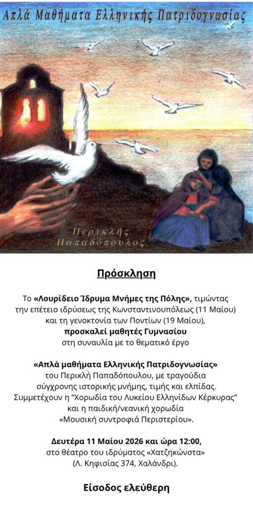 «Απλά μαθήματα Ελληνικής Πατριδογνωσίας» μετά την Πάτρα, τα Καλάβρυτα, την Κέρκυρα και τη Θεσσαλονίκη με το Κοινωφελές Λουρίδειον ίδρυμα και Πνευματικό κέντρον “Μνήμες της Πόλης” https://lourideio.gr/ στην αίθουσα θεάτρου του ιδρύματος Χατζηκώνστα http://xatzikonsta.gr/