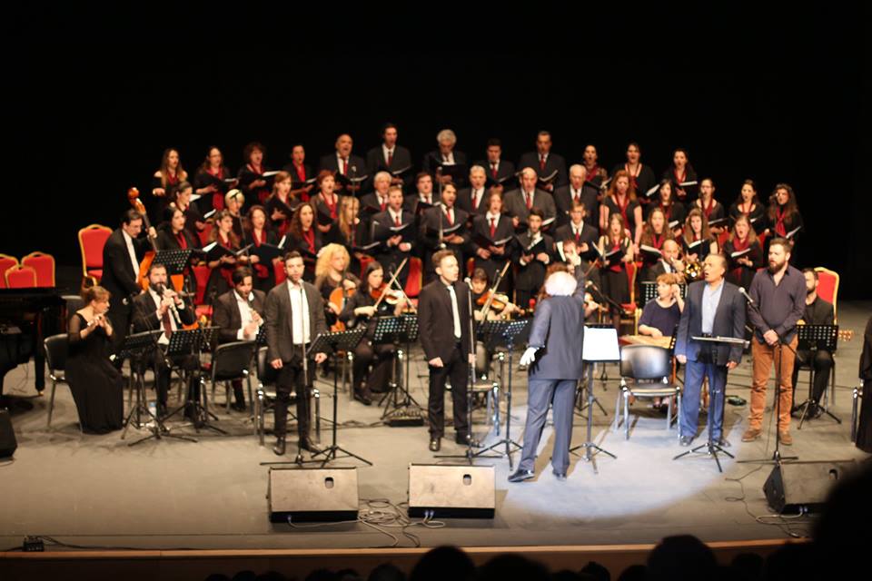 Το μεγαλύτερο ευχαριστώ στον συνθέτη μας Γιάννη Μαρκόπουλο, που σε κάθε συνεργασία μας υποδέχεται με το λαμπρό του χαμόγελο του και την νεανική σπιρτάδα της ψυχής του. Χαρακτηριστικό της μέθεξης του από αυτή την συνεργασία μας, αποτελεί το γεγονός ότι διηύθυνε χορεύοντας και τραγουδώντας με την ψυχή του το φινάλε της “Εξόδου” του έργου. Η συνεργασία του μαζί μας μας τιμά και μας κάνει υπερήφανου, αλλά και συνεπής προς τον νέο κοινό στόχο που επικυρώσαμε με το πέρας αυτής μας της συναυλίας.