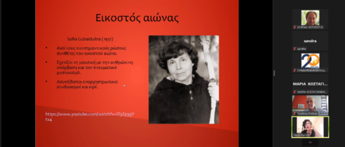 Στη συνέχεια, η μαέστρος και μουσικοπαιδαγωγός Βάσω Καριώτη αναφέρθηκε σε συνθέτριες ορόσημα από το Βυζάντιο ως σήμερα με παραδείγματα από τη φιλολογία της φωνητικής μουσικής.