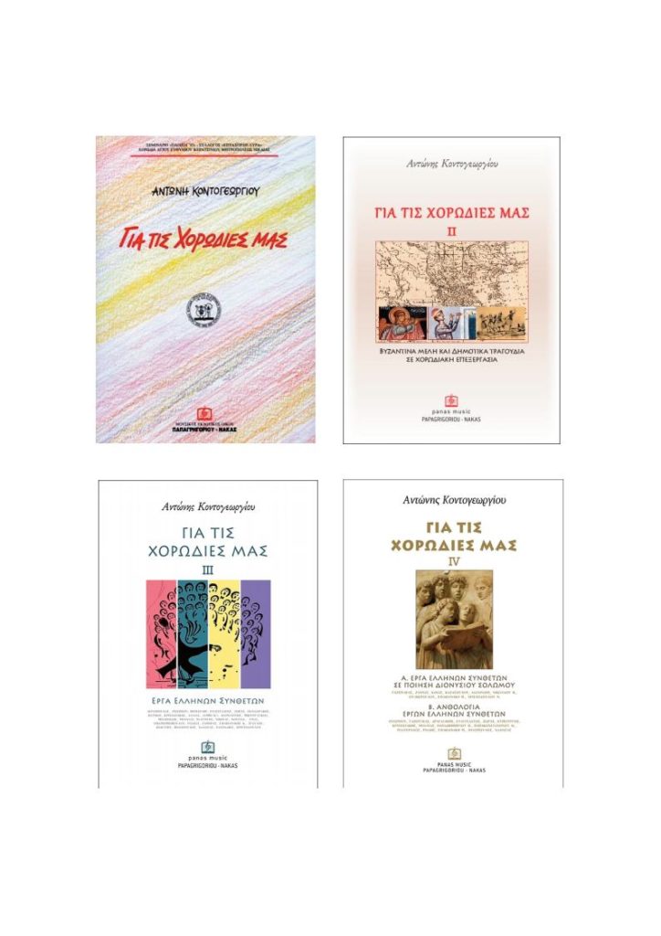 Όλα αυτά εκτελέστηκαν από τον Α. Κοντογεωργίου και τα διάφορα χορωδιακά συγκροτήματα που ίδρυσε και διηύθυνε. Ήμαστε πάντοτε σε επικοινωνία, δεδομένου ότι προετοίμαζε να παρουσιάσει κάποια συνολική ανάλυση του χορωδιακού μου έργου.