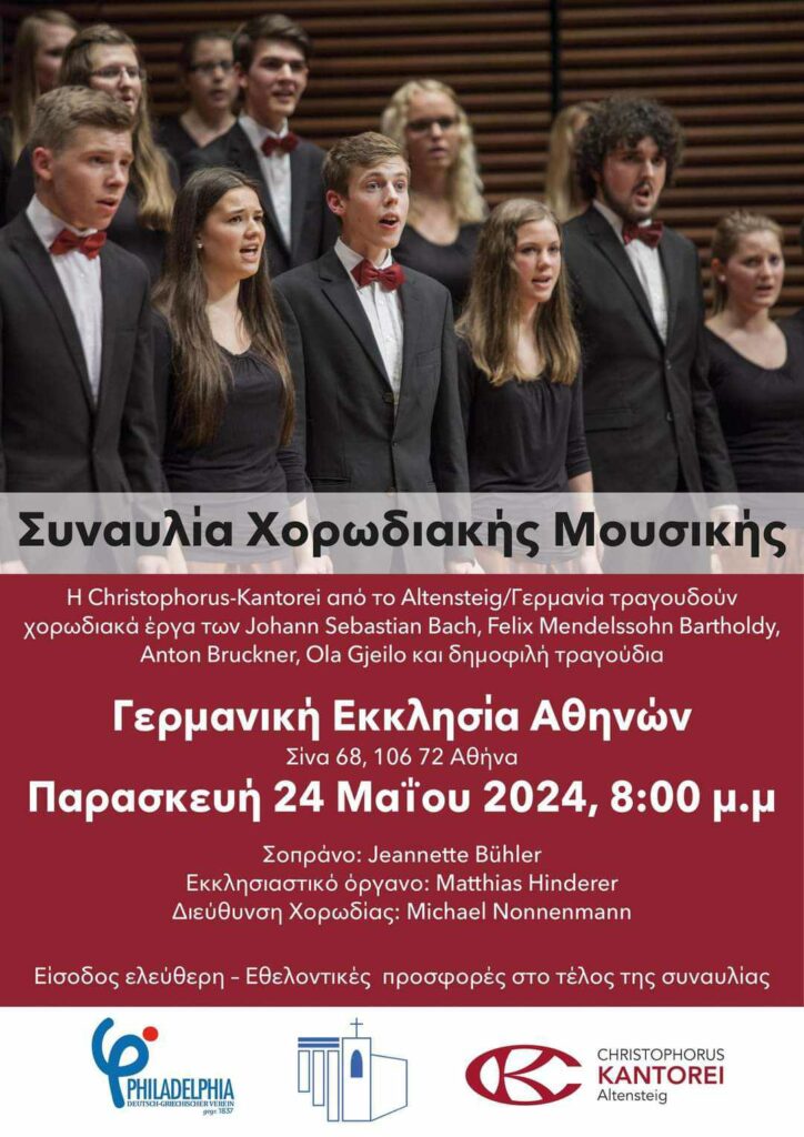 Η διεθνούς φήμης χορωδία νέων – της πόλης Altensteig στη Γερμανία, θα παρουσιάσει έργα θρησκευτικής μουσικής διαφόρων Ευρωπαίων συνθετών για χορωδία και εκκλησιαστικό όργανο.