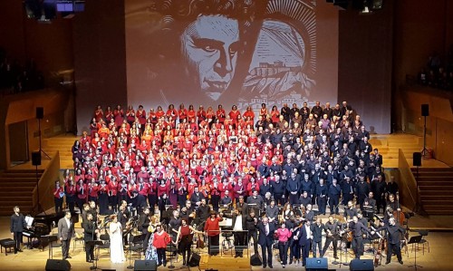 Για πρώτη φορά 300 χορωδοί απ’ όλη την Ελλάδα σχημάτισαν μία τεράστια χορωδία η οποία απέδωσε μερικά από τα αριστουργήματα του μεγάλου μας δημιουργού. Από τις μεγαλύτερες συμπράξεις χορωδιών επί σκηνής για την απόδοση έργων του ΜΙΚΗ ΘΕΟΔΩΡΑΚΗ. Χορωδίες επιλεγμένες από τις ελληνικές πόλεις – σταθμούς της ζωής του παγκόσμιου Μίκη, υπό την διεύθυνση του εξαιρετικού μαέστρου Παναγή Μπαρμπάτη, που με ιδιαίτερη ψυχή και αγάπη για την μουσική αυτή μετέδωσε την δυναμικότητα των εναρμονίσεων του στα έργα του Μίκη Θεοδωράκη, σε σολίστες, ορχήστρα και χορωδούς, προκαλώντας “μουσικά” ρίγη στο φιλόμουσο κοινό του Μεγάρου.