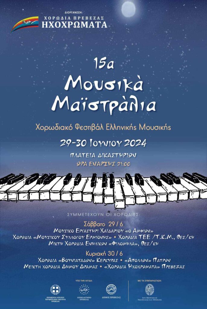 Για δύο μέρες στις 29 και 30 Ιουνίου αναμένεται να “φυσήξουν” φέτος τα Μουσικά Μαϊστράλια στην Πρέβεζα.