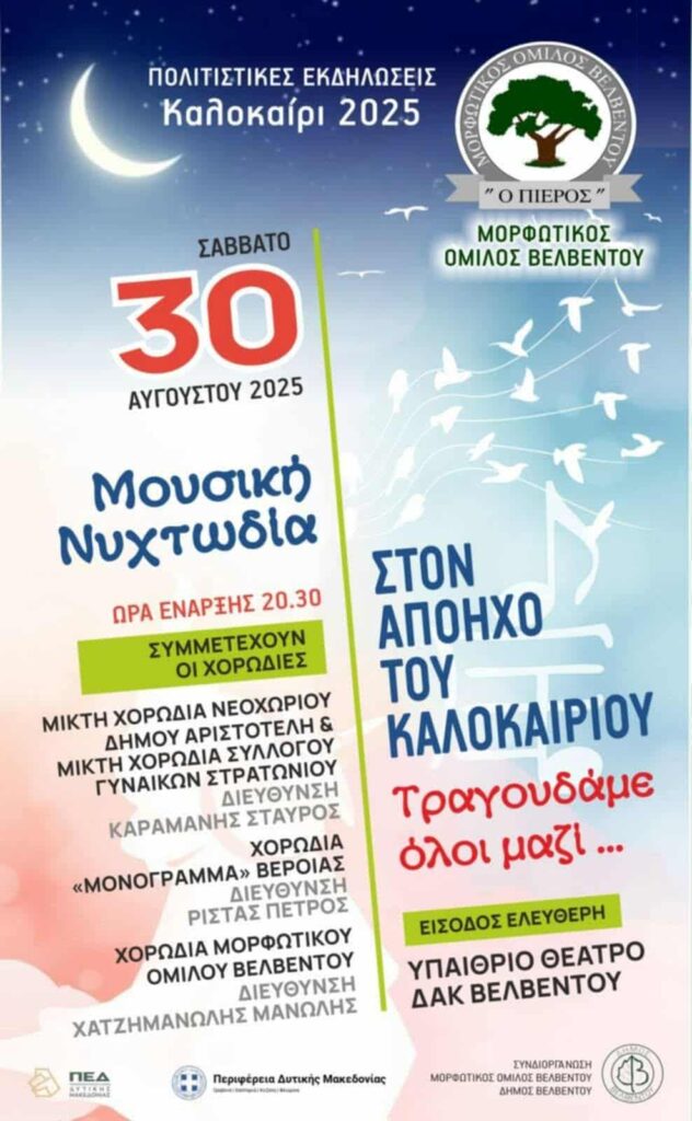 Μουσική Νυχτωδία – Στον Απόηχο του Καλοκαιριού Posted by Διαχειριστής Ιστοτόπου Στέγης Ελληνικών Χορωδιών Date: 30 Αυγούστου, 2025 in: Ειδήσεις, Φεστιβάλ, Χορωδιακές Εκδηλώσεις Leave a comment 19 Views