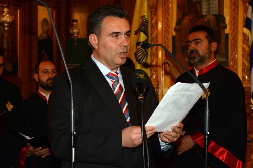 Στο ενδιάμεσο των δύο μουσικών μερών, ο Αιδεσιμώτατος ιερέας του ναού π. Στυλιανός Μασσαράς εκφώνησε επίκαιρη, ολιγόλεπτη ομιλία, αναφερόμενη στο κορυφαίο θεολογικό γεγονός του Ευαγγελισμού της Θεοτόκου. Ανέλυσε με απλό και ευκολονόητο τρόπο την μεγάλη σημασία αυτής της Θεομητορικής εορτής και ανέδειξε την αξία της Παρθένου ως σύμβολο του ανθρωπίνου γένους, με την Αγνότητα του χαρακτήρα και της ψυχής της, ώστε να φέρει στον κόσμο τον Χριστό, τον Σωτήρα και Λυτρωτή όλων ημών. «Με τον Ευαγγελισμό της Θεοτόκου γίνεται η απαρχή της Σωτηρίας του γένους των ανθρώπων» κατέληξε, τονίζοντας «την ανάγκη ο σύγχρονος άνθρωπος να δεχθεί τον Θεό δίπλα του, για να πορευθεί με βάση τις εντολές του».