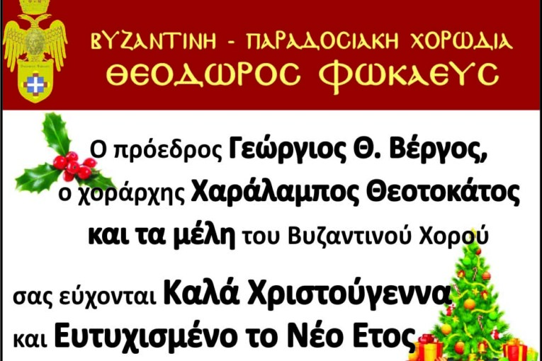 Χριστουγεννιάτικες ευχές Χορωδίας Θεόδωρος Φωκαεύς Posted by Βυζαντινή-Παραδοσιακή Χορωδία Θεόδωρος Φωκαεύς Date: 23 Δεκεμβρίου, 2022 in: Νέα Χορωδιών Leave a comment 425 Views image description
