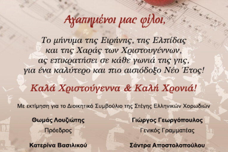 Χριστουγεννιάτικες Ευχές Στέγης Ελληνικών Χορωδιών Posted by Διαχειριστής Ιστοτόπου Στέγης Ελληνικών Χορωδιών Date: 18 Δεκεμβρίου, 2023 in: feature, Νέα Στέγης Leave a comment 60 Views