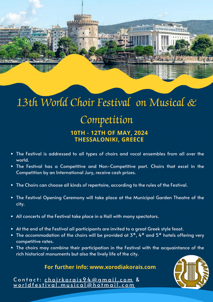 13ο Παγκόσμιο Φεστιβάλ Χορωδιών Μιούζικαλ και Διαγωνισμός Posted by Διαχειριστής Ιστοτόπου Στέγης Ελληνικών Χορωδιών Date: 19 Σεπτεμβρίου, 2023 in: feature, Κάλεσμα, Νέα Χορωδιών Leave a comment 206 Views Αναλυτικές πληροφορίες στην αφίσα.