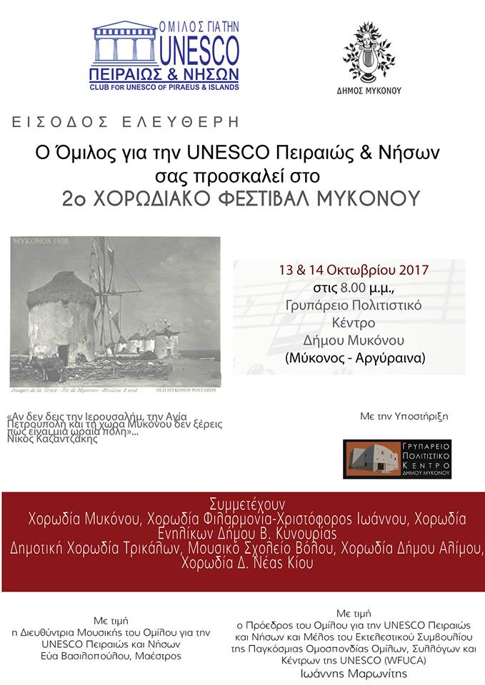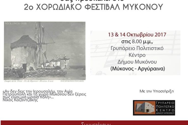 2ο Χορωδιακό Φεστιβάλ Μυκόνου Posted by Διαχειριστής Ιστοτόπου Στέγης Ελληνικών Χορωδιών Date: 09 Οκτωβρίου, 2017 in: Φεστιβάλ, Χορωδιακές Εκδηλώσεις Leave a comment 2919 Views