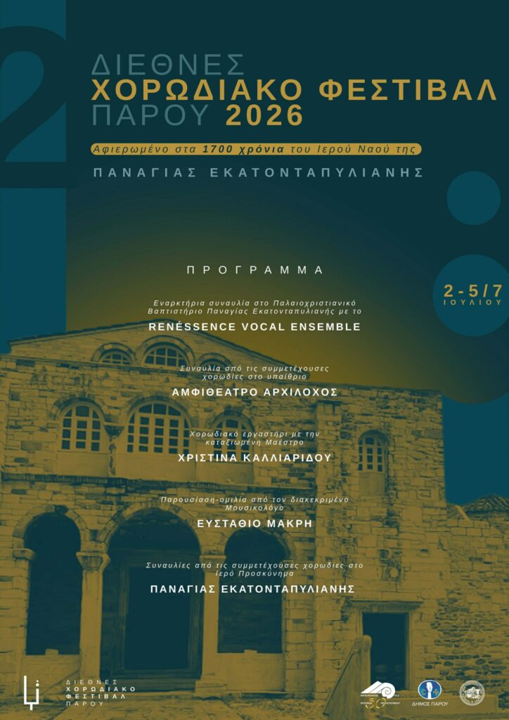 2ο Διεθνές Χορωδιακό Φεστιβάλ Πάρου 2026 Posted by Διαχειριστής Ιστοτόπου Στέγης Ελληνικών Χορωδιών Date: 17 Απριλίου, 2026 in: Ειδήσεις, Πολιτιστικές - Μουσικές Ειδήσεις, Φεστιβάλ Leave a comment 5 Views