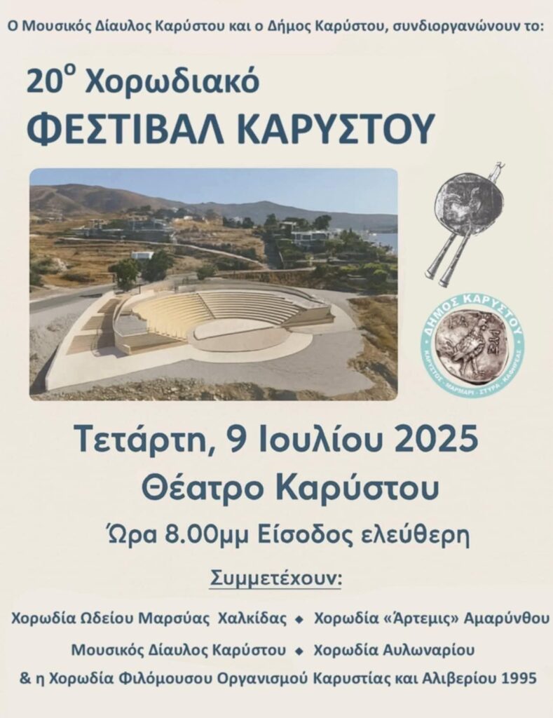 20ο Χορωδιακό Φεστιβάλ Καρύστου Posted by Διαχειριστής Ιστοτόπου Στέγης Ελληνικών Χορωδιών Date: 10 Ιουλίου, 2025 in: Ειδήσεις, Φεστιβάλ Leave a comment 30 Views