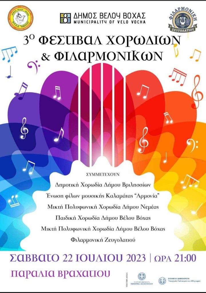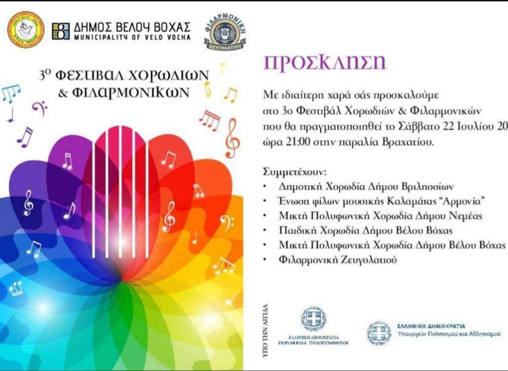 3ο Φεστιβάλ Χορωδιών και Φιλαρμονικών στην παραλία Βραχατίου Posted by Διαχειριστής Ιστοτόπου Στέγης Ελληνικών Χορωδιών Date: 21 Ιουλίου, 2023 in: Ειδήσεις, Φεστιβάλ Leave a comment 768 Views Το 3ο Φεστιβάλ Χορωδιών και Φιλαρμονικών είναι γεγονός το Σάββατο 22 Ιουλίου, ώρα 21:00 στην παραλία Βραχατίου. Περισσότερες πληροφορίες στην συνημμένη πρόσκληση και αφίσα.