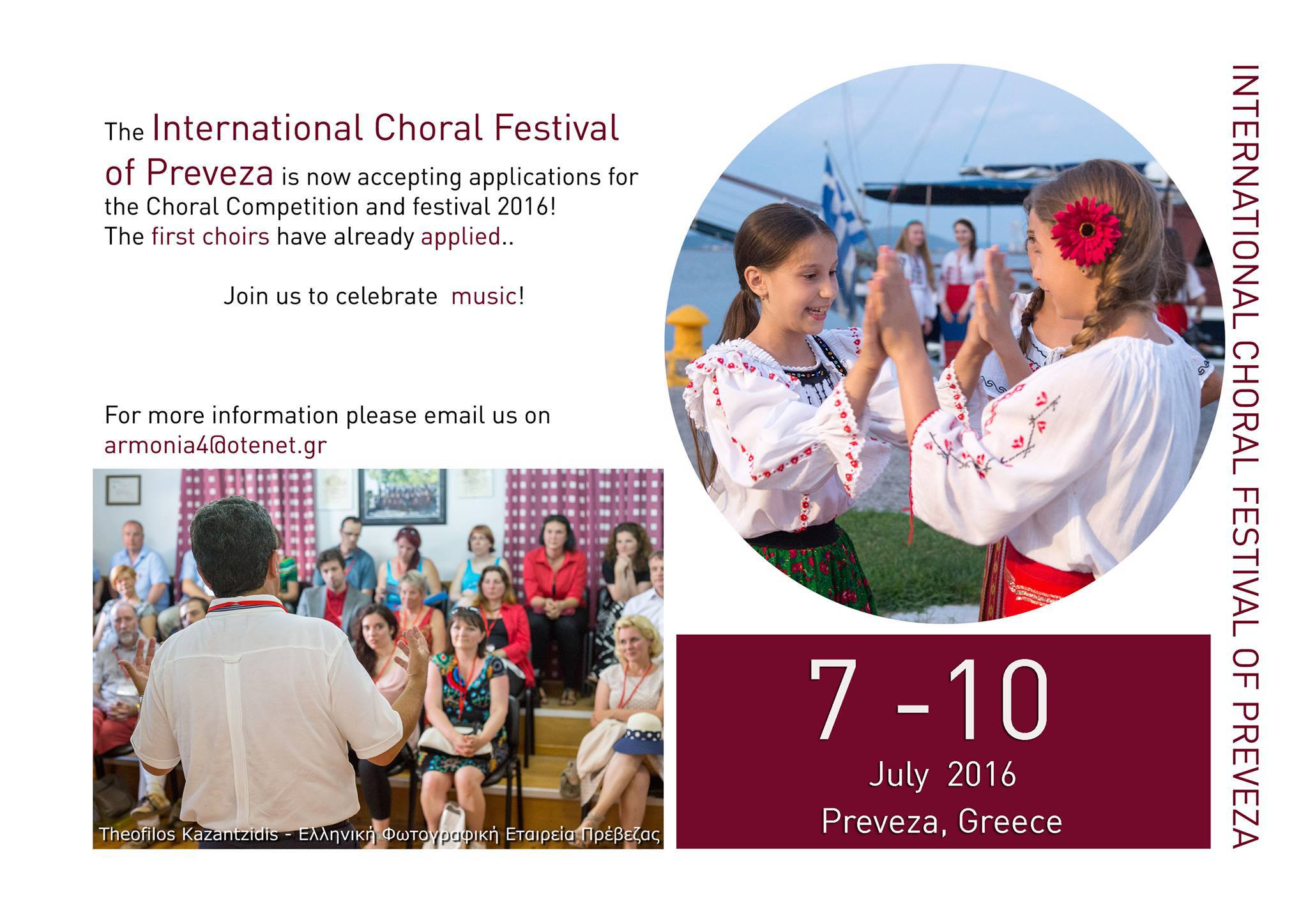 - 35ο Διεθνές Χορωδιακό Φεστιβάλ της Πρέβεζας – 23ος Διεθνής Χορωδιακός Ανταγωνισμός της Ιερής Μουσικής ΠΡΕΒΕΖΑ – 6 έως και 9 Ιουλίου 2017.