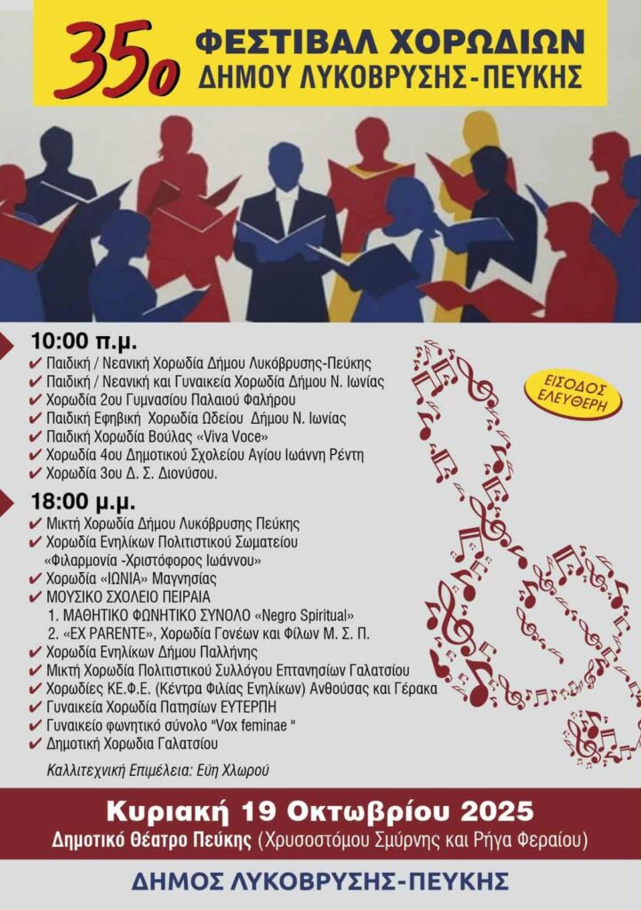 35ο Φεστιβάλ Χορωδιών Δήμου Λυκόβρυσης – Πεύκης Posted by Διαχειριστής Ιστοτόπου Στέγης Ελληνικών Χορωδιών Date: 17 Οκτωβρίου, 2025 in: Ειδήσεις, Φεστιβάλ, Χορωδιακές Εκδηλώσεις Leave a comment 18 Views