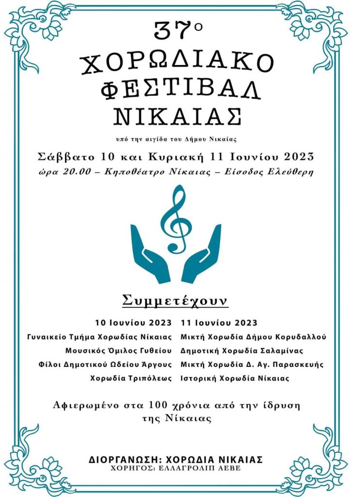 37ο Χορωδιακό Φεστιβάλ Νίκαιας Posted by Διαχειριστής Ιστοτόπου Στέγης Ελληνικών Χορωδιών Date: 31 Μαΐου, 2023 in: feature, Ειδήσεις, Φεστιβάλ Leave a comment 414 Views Ἀναλυτικές πληροφορίες στήν ἀφίσα.