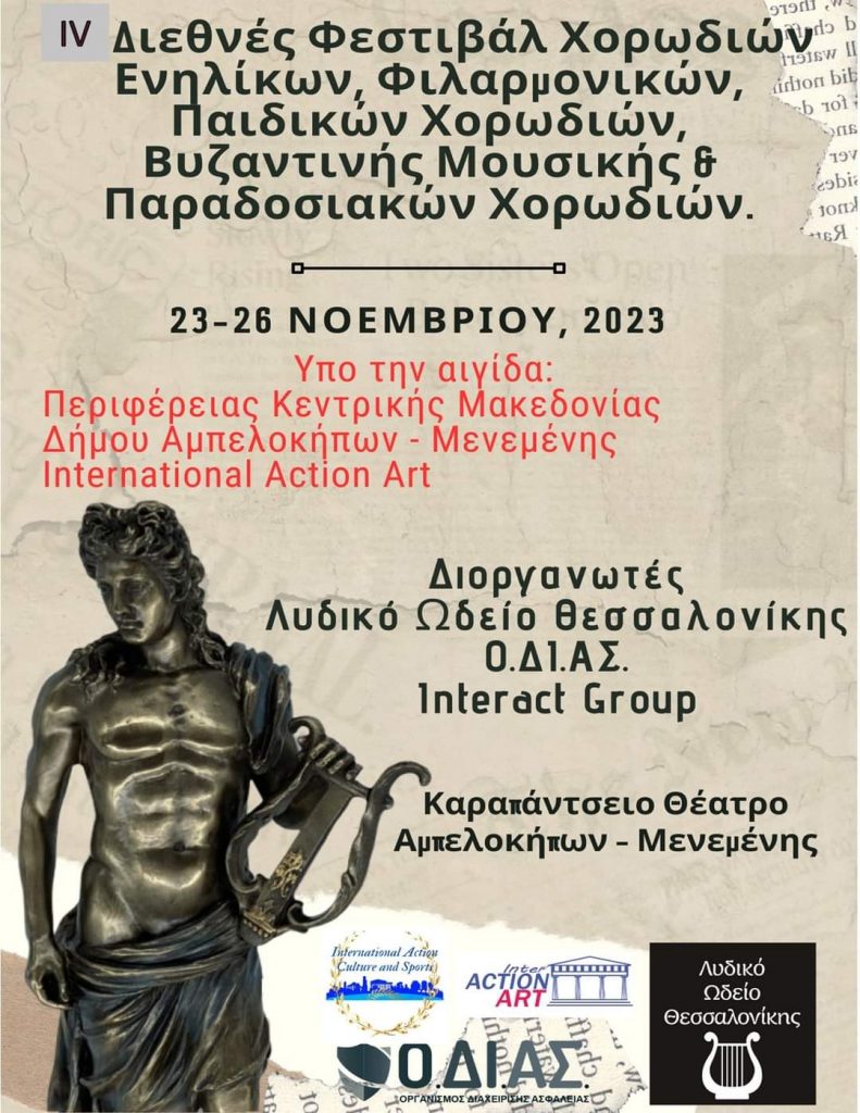 4ο Διεθνές Φεστιβάλ Χορωδιών Αμπελοκήπων – Μενεμένης Posted by Διαχειριστής Ιστοτόπου Στέγης Ελληνικών Χορωδιών Date: 26 Μαΐου, 2023 in: Άλλα Leave a comment 246 Views Αναλυτικές πληροφορίες στην αφίσα.