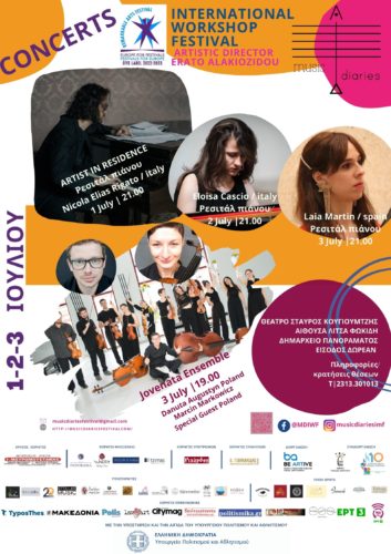 Η 5η διεθνής διοργάνωση του “Music Diaries” International Workshop Festival, θα πραγματοποιηθεί από 1 έως 3 Ιουλίου 2022 στις εγκαταστάσεις του Δημοτικού Ωδείου Πυλαίας-Χορτιάτη.