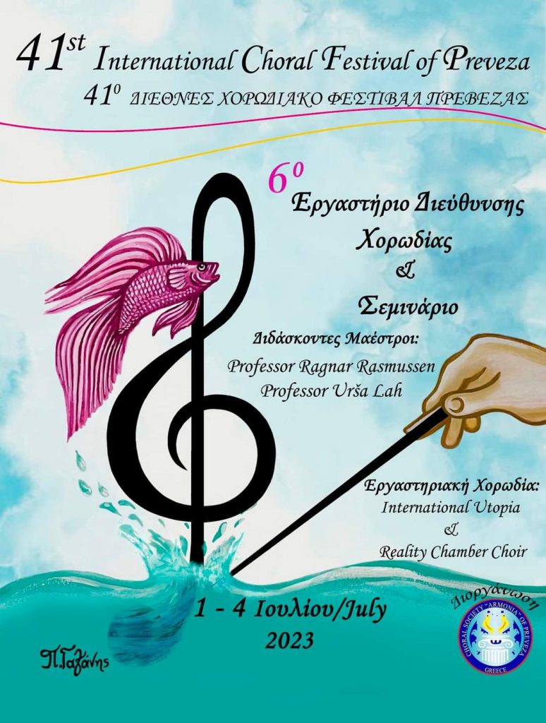 6ο Εργαστήριο Διεύθυνσης Χορωδίας & Σεμινάριο (Πρέβεζα) Posted by Διαχειριστής Ιστοτόπου Στέγης Ελληνικών Χορωδιών Date: 27 Απριλίου, 2023 in: Ειδήσεις, Σεμινάρια Leave a comment 489 Views Στα πλαίσια του 41ου Διεθνούς Χορωδιακού Φεστιβάλ Πρέβεζας θα πραγματοποιηθεί το 6ο εργαστήριο – σεμινάριο για Μαέστρους-Διευθυντές χορωδίας, από τις 1 έως και τις 4 Ιουλίου 2023 στην Πρέβεζα.