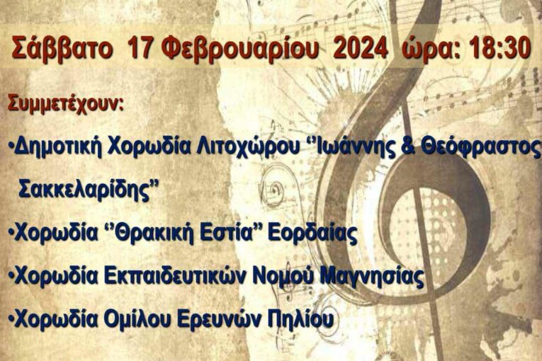 7η Συνάντηση Χορωδιών Ομίλου Ερευνών Πήλιου Posted by Διαχειριστής Ιστοτόπου Στέγης Ελληνικών Χορωδιών Date: 08 Φεβρουαρίου, 2024 in: Φεστιβάλ Leave a comment 69 Views Αναλυτικές πληροφορίες υπάρχουν στην αφίσα.