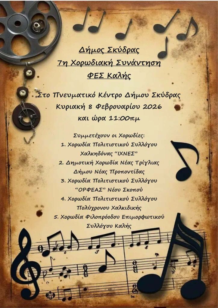 7η Χορωδιακή Συνάντηση Δήμου Σκύδρας Posted by Διαχειριστής Ιστοτόπου Στέγης Ελληνικών Χορωδιών Date: 30 Ιανουαρίου, 2026 in: Ειδήσεις, Χορωδιακές Εκδηλώσεις Leave a comment 3 Views