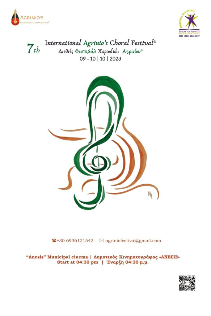 7ο Διεθνές Φεστιβάλ Χορωδιών Αγρινίου !! Posted by Διαχειριστής Ιστοτόπου Στέγης Ελληνικών Χορωδιών Date: 03 Απριλίου, 2026 in: Ειδήσεις, Πολιτιστικές - Μουσικές Ειδήσεις, Φεστιβάλ Leave a comment 4 Views Πληροφορίες στο 6936121542 και 6943400311 email: agriniofestival@gmail.com Καλλιτεχνική Διεύθυνση : Χρύσα Τασολάμπρου ΦΟΡΜΑ ΣΥΜΜΕΤΟΧΉΣ _2026Λήψη