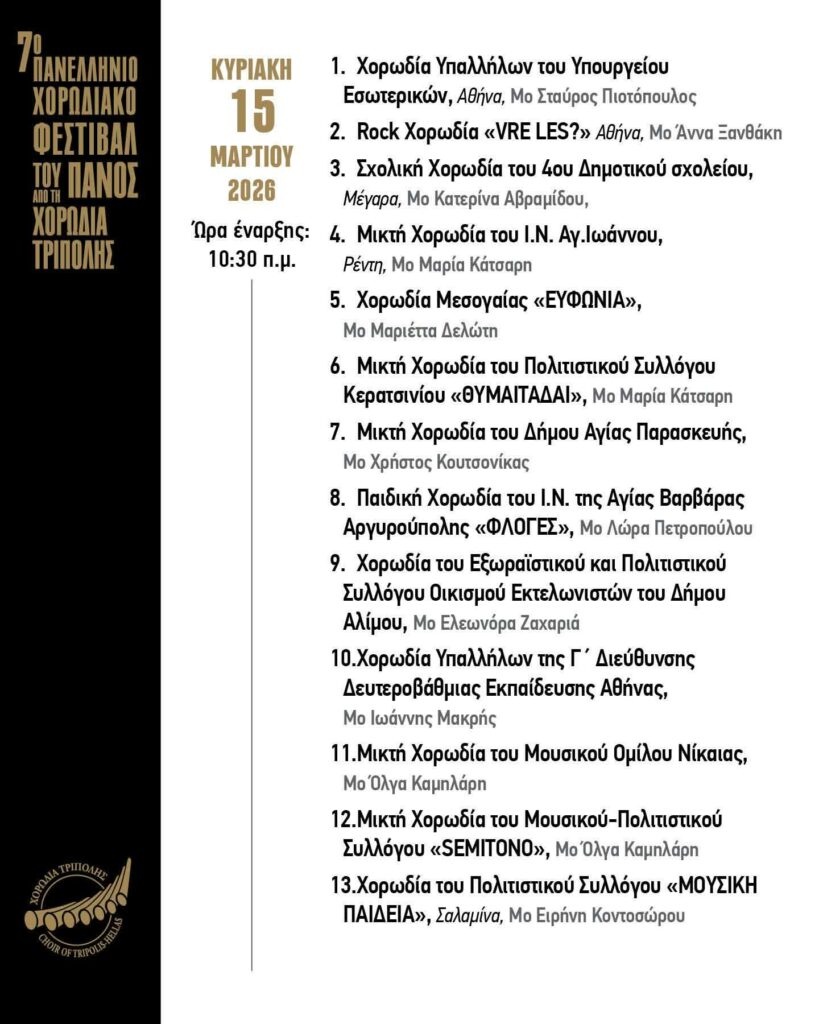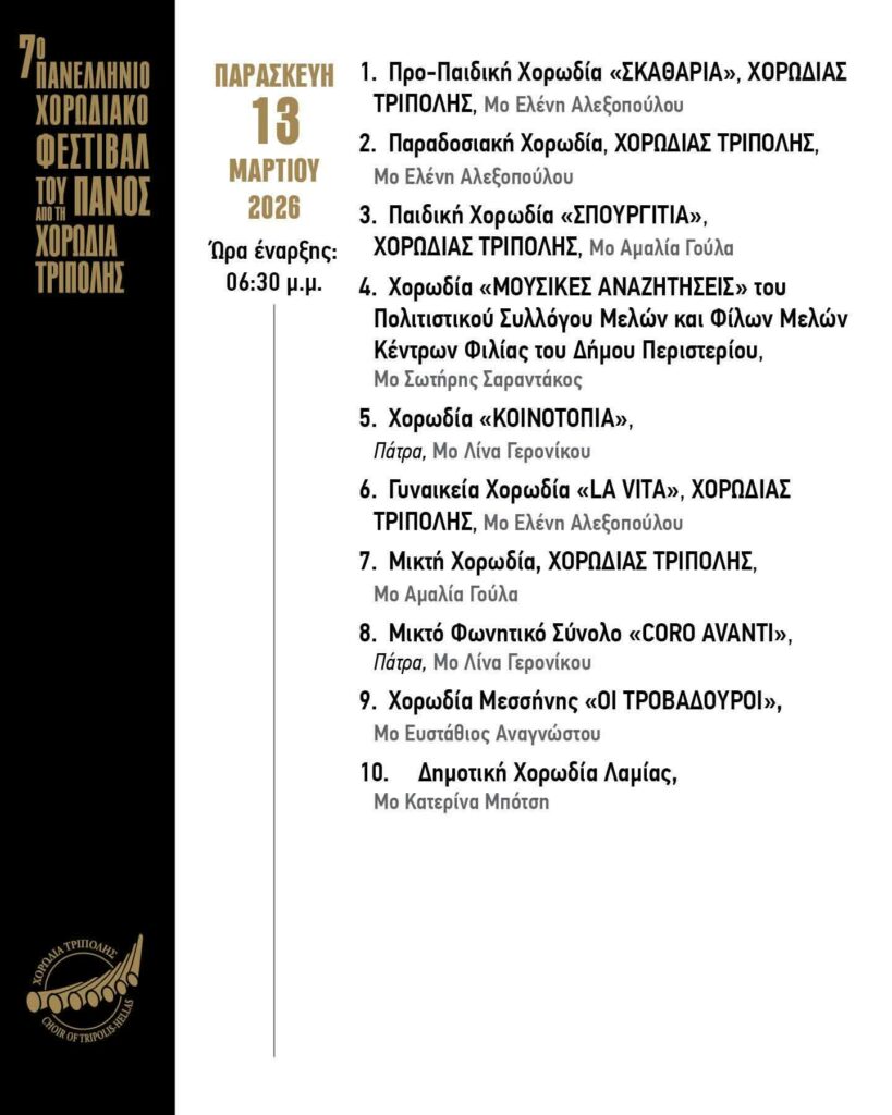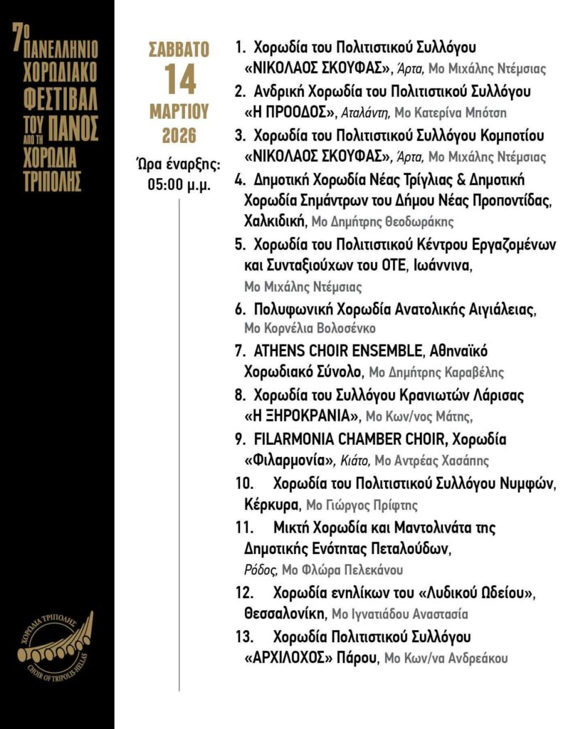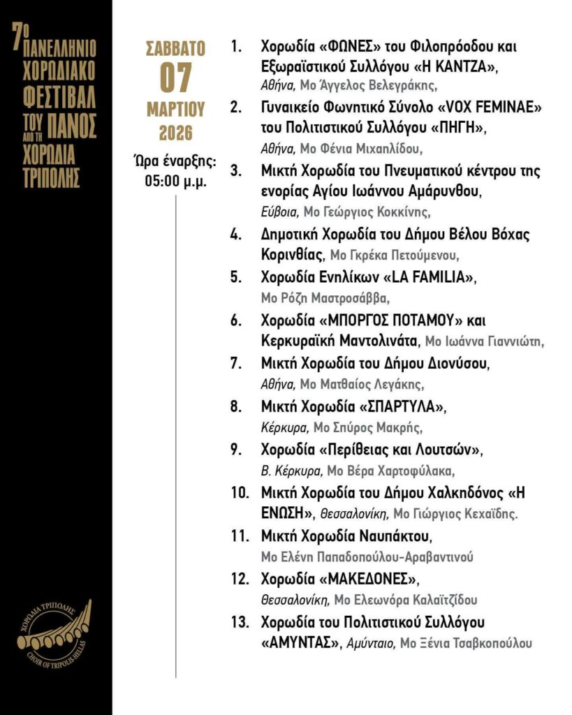 ΠΡΟ ΤΩΝ ΠΥΛΩΝ ΤΟ 12ΗΜΕΡΟ ΠΑΝΕΛΛΗΝΙΟ ΧΟΡΩΔΙΑΚΟ ΦΕΣΤΙΒΑΛ ΤΟΥ ΠΑΝΟΣ ΤΗΣ ΧΟΡΩΔΙΑΣ ΤΡΙΠΟΛΗΣ ΜΕ 70 ΧΟΡΩΔΙΕΣ ΚΑΙ 8 ΠΑΡΑΛΛΗΛΕΣ ΜΟΥΣΙΚΕΣ ΕΚΔΗΛΩΣΕΙΣ!!!