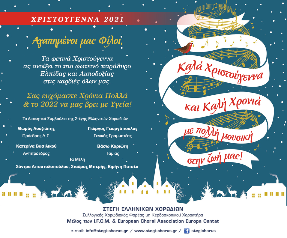 Αγαπητοί Συνοδοιπόροι, Όπως γνωρίζετε η Στέγη Ελληνικών Χορωδιών ιδρύθηκε το 2003 με πρωτοβουλία του Στέφ ...