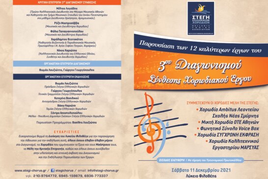 ΠΡΟΚΗΡΥΞΗ 3ου ΔΙΑΓΩΝΙΣΜΟΥ ΣΥΝΘΕΣΗΣ ΧΟΡΩΔΙΑΚΟΥ ΕΡΓΟΥ ΣΤΕΓΗΣ ΓΙΑ ΔΗΜΟΤΙΚΑ – ΠΑΡΑΔΟΣΙΑΚΑ ΤΡΑΓΟΥΔΙΑ & ΒΥΖΑΝΤΙΝΑ ΜΕΛΗ