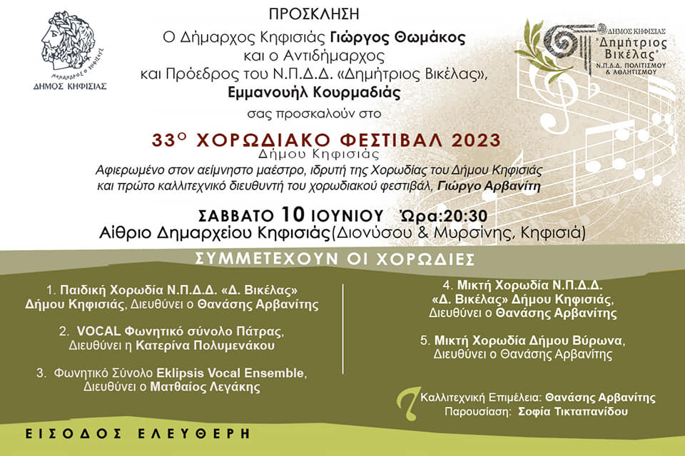 Μικτή Χορωδία Ν.Π.Δ.Δ. «Δ. Βικέλας» Δήμου Κηφισιάς, Διευθύνει ο Θανάσης Αρβανίτης