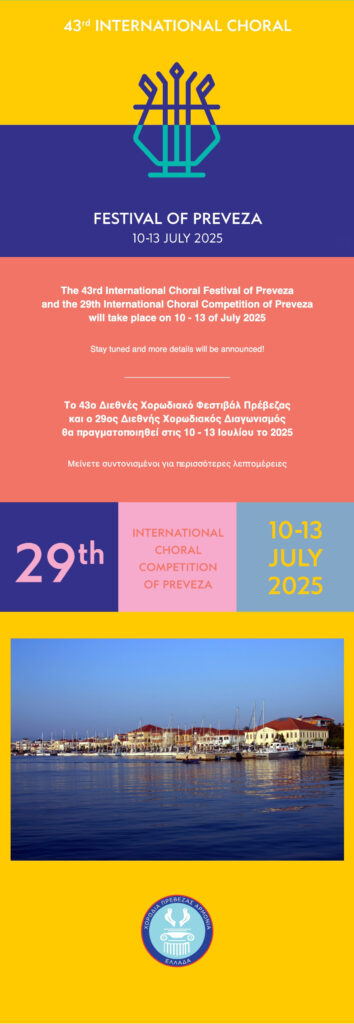 Αγαπητοί διοργανωτές του 43ου Διεθνούς Φεστιβάλ Χορωδιών Πρέβεζας,