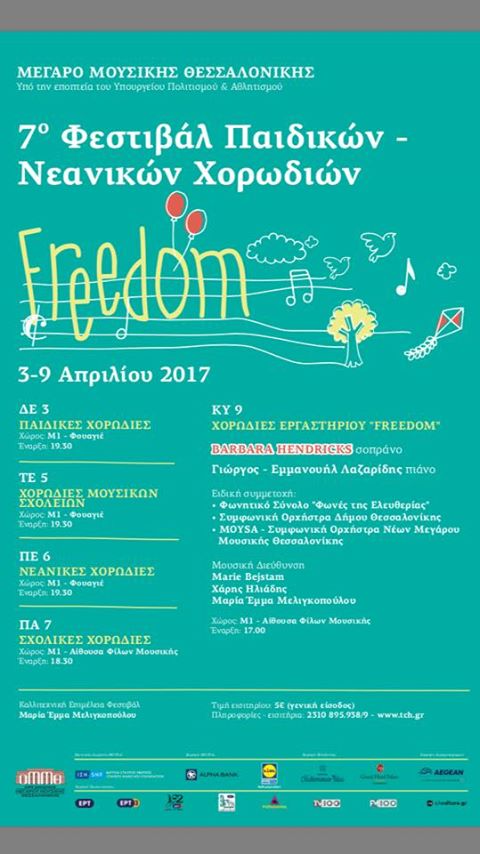 29 επίλεκτες παιδικές και νεανικές χορωδίες από όλη την Ελλάδα, Α´ Πανελλήνιες εκτελέσεις και η μαγική φωνή της Βarbara Hendricks, σε μια χορωδιακή πανδαισία απο τις 3 ως τις 9 Απριλίου στο Μέγαρο Μουσικής Θεσσαλονίκης!