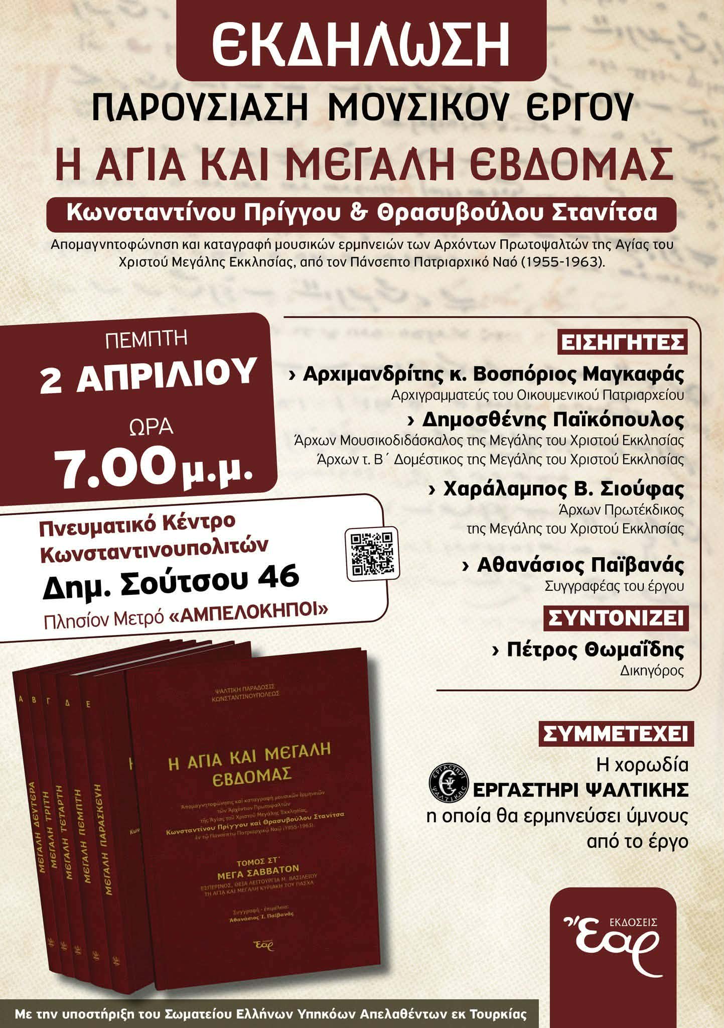 19:00 - 20:00 Βιβλιοπαρουσίαση του έργου «Η Αγία και Μεγάλη Εβδομάς» 2 Απριλίου @ 19:00 - 20:00 Βιβλιοπαρουσίαση του έργου «Η Αγία και Μεγάλη Εβδομάς»
