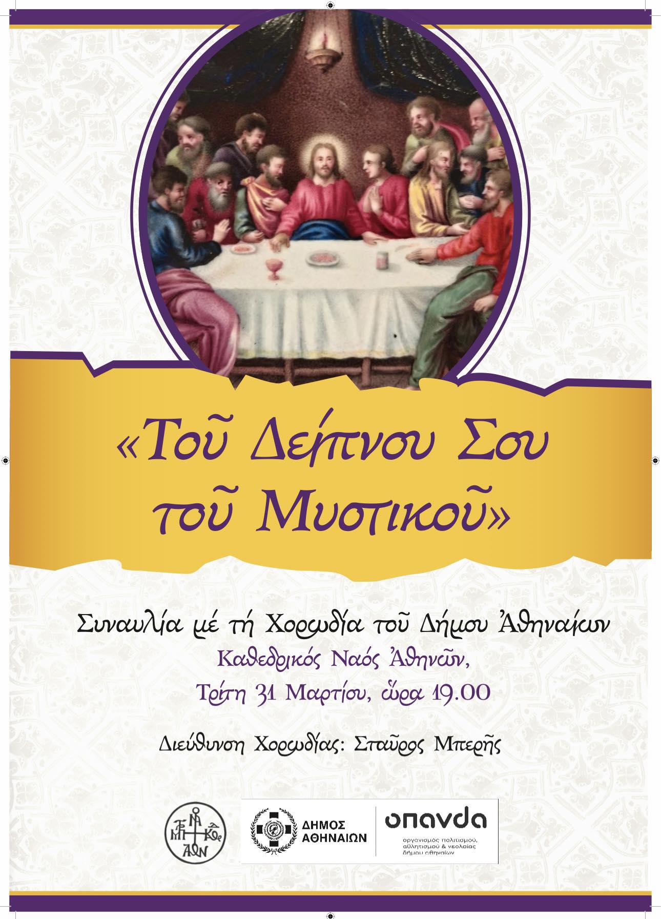 31 Μαρτίου @ 19:00 - 21:00 “Του Δείπνου Σου του Μυστικού” – Συναυλία με τη χορωδία του Δήμου Αθηναίων