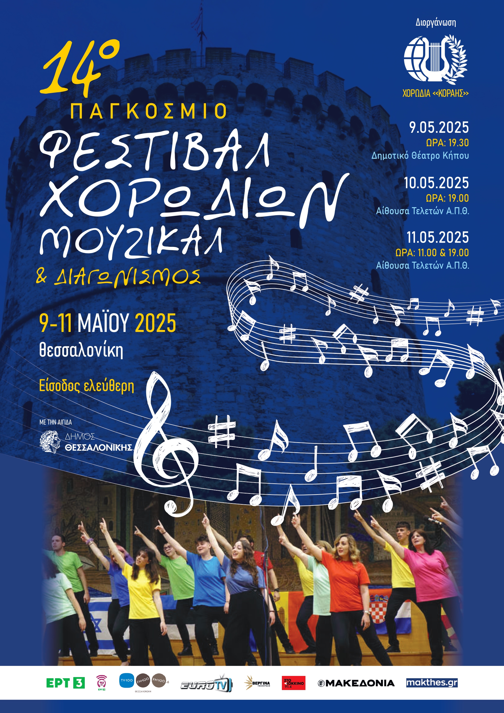 9 Μαΐου - 11 Μαΐου 14th World Choir Festival on Musical & Competition Αναλυτικές πληροφορίες: https://xorodiakoraiseng.weebly.com/world-choir-festival-on-musical--competition.html
