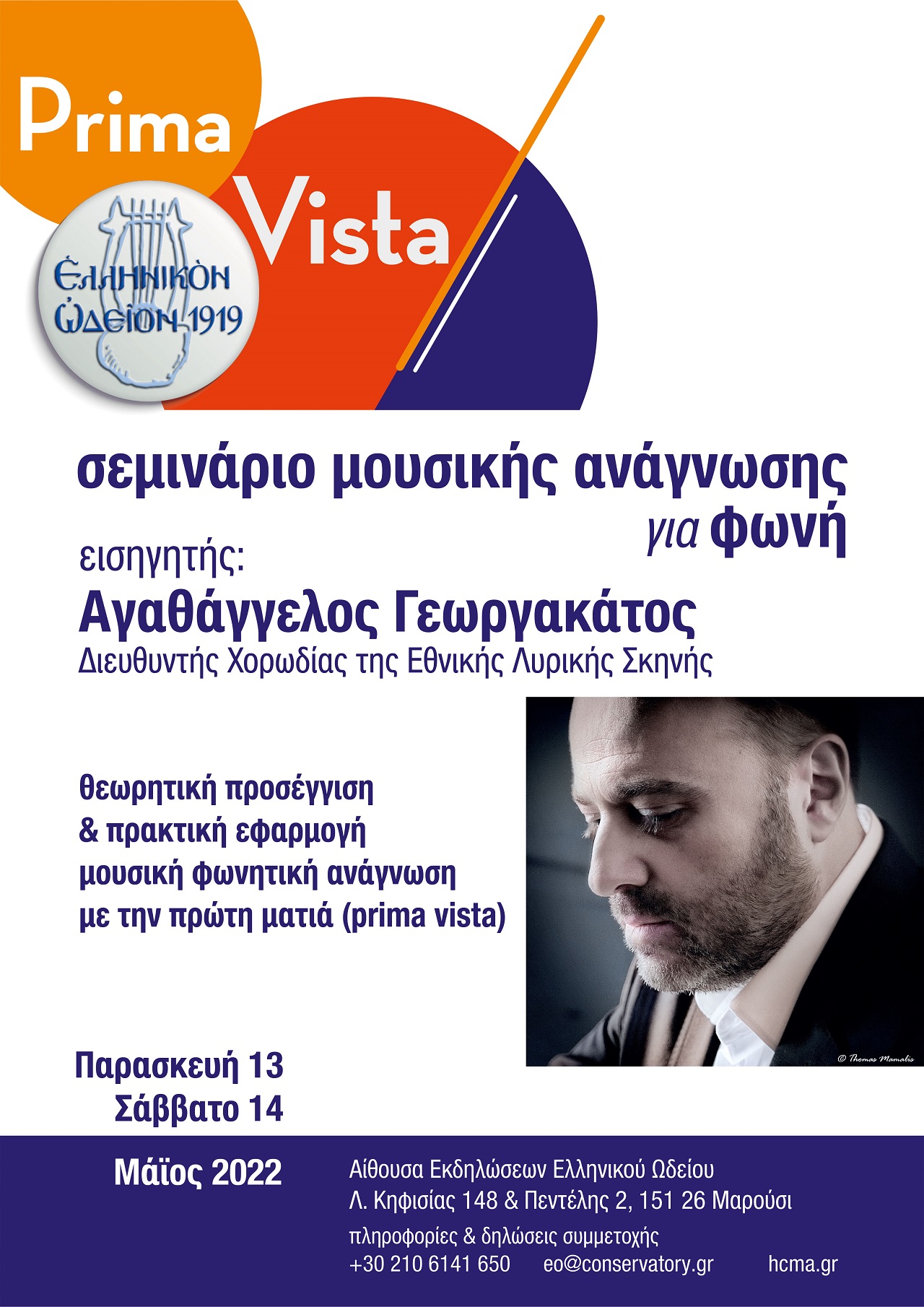 13 Μαΐου 2022 - 14 Μαΐου 2022 Σεμινάριο Μουσικής Ανάγνωσης για Φωνή με τον Αγαθάγγελο Γεωργακάτο Ελληνικό Ωδείο Μαρούσι Λεωφόρος Κηφισίας & Πεντέλης 2, Μαρούσι Πληροφορίες στην συνημμένη αφίσα