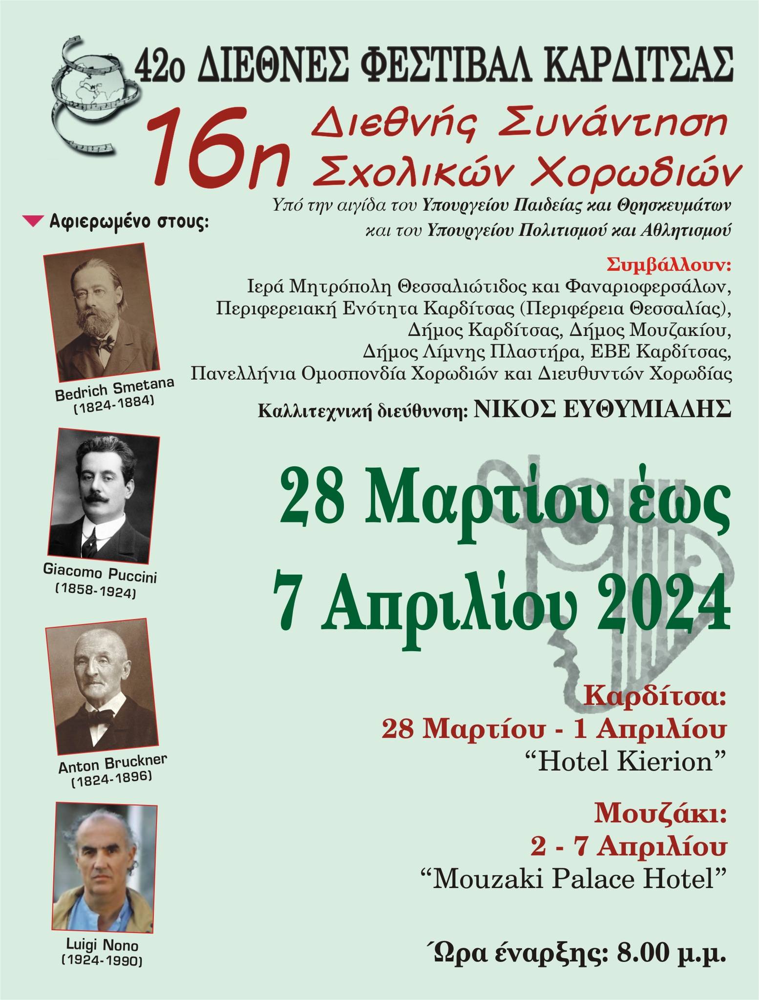 Σας περιμένουμε στην Καρδίτσα, για να λάβετε μέρος στη 16η Διεθνή Συνάντηση Σχολικών Χορωδιών Καρδίτσας, που θα αρχίσει και θα τελειώσει με την παρουσίαση της "Ωδής της Χαράς", από όλες ...