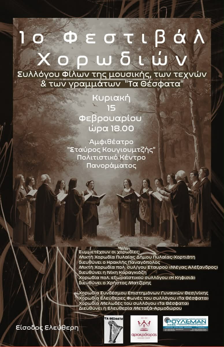 15 Φεβρουαρίου @ 18:00 - 19:30 1ο Φεστιβάλ Χορωδιών Συλλόγου Φίλων της Μουσικής, των Τεχνών & των Γραμμάτων “Τα Θέσφατα”
