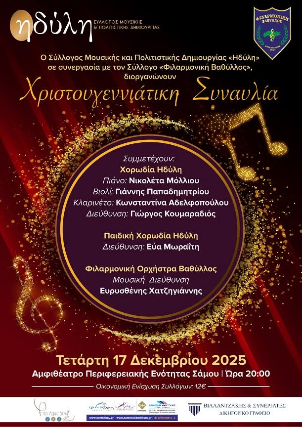 17 Δεκεμβρίου @ 20:00 - 22:00 Χριστουγεννιάτικη Συναυλία – Ηδύλη Αμφιθέατρο Περιφεριακής Ενότητας Σάμου