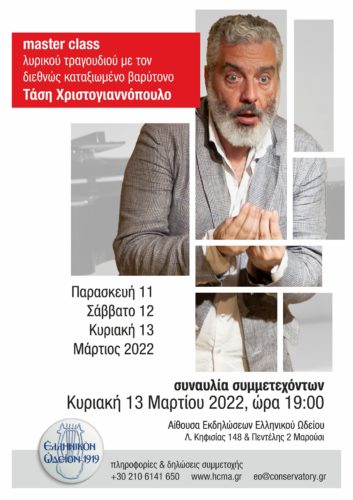 Περισσότερες πληροφορίες και φόρμα εγγραφής: https://hcma.gr/master-class-lyrikoy-tragoudioy-2022