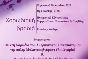 Χορωδιακή βραδιά Χορωδίας Πρέβεζας “Αρμονία”